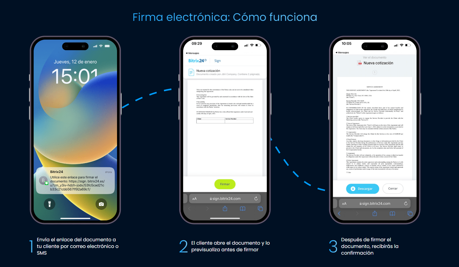 Bitrix24 Sign elimina el "proceso" de firma de documentos. Ahora puedes firmar varios documentos con tan solo unos toques en tu smartphone, en cualquier momento y en cualquier lugar.