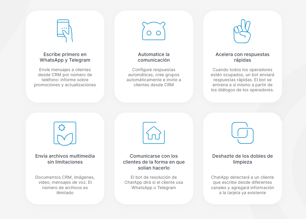 WhatsApp Business API WhatsApp Empresas desde 74€ / mes Perfil autorizado oficial en WhatsApp, marca de verificación verde y nombre en lugar de número, botones interactivos en mensajes, distribuciones, canal estable MÁS INFORMACIÓN