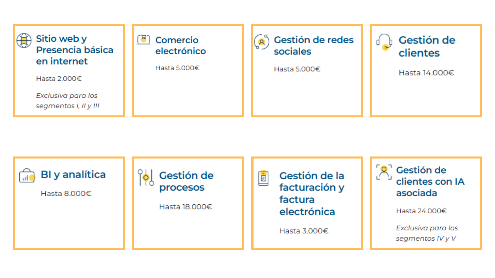 Los bonos digitales oscilan entre 2.000-12.000 Euros en función del tamaño de tu empresa.